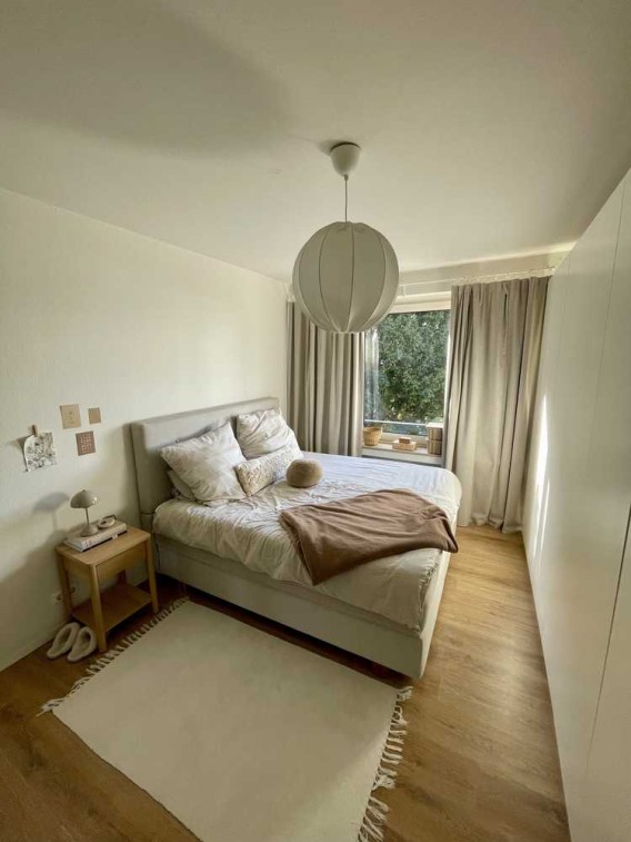 Die Wohnung verfügt über ein großzügiges Wohnzimmer mit viel Tageslicht und Zugang zu einem einladenden Balkon. Das Schlafzimmer bietet ausreichend Raum für ein Doppelbett und weiteres Mobiliar. Die Einbauküche ist ausgestattet mit Herd, Backofen, Kühlschrank mit Eisfach sowie einer Spülmaschine – funktional und gepflegt. Sie wird mitvermietet und ist in der Kaltmiete enthalten. Das Badezimmer ist modern gestaltet und mit einer Duschwanne ausgestattet.
