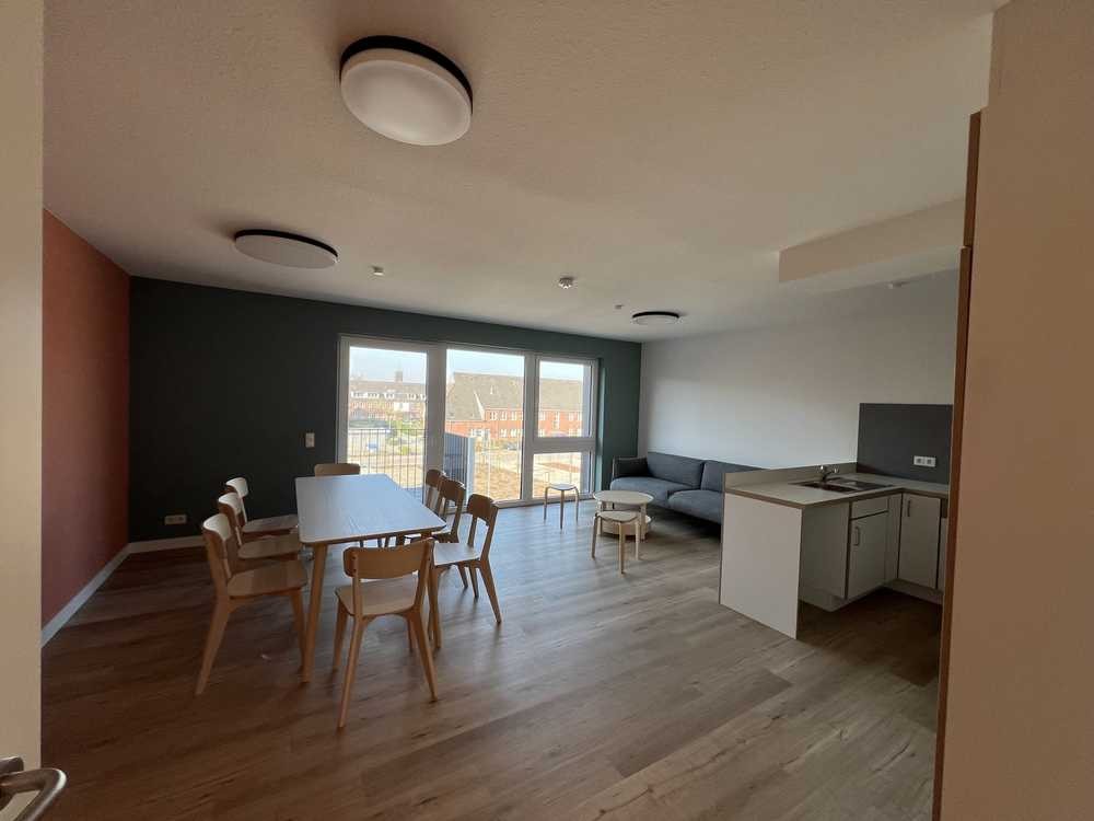 Die Etagen in der Wohnanlage sind über eine zentral gelegene Treppe und einen Auf-zug erreichbar. Jede WG verfügt über einen Balkon. Anschlussmöglichkeiten für eine Waschmaschine und einen Trockner befinden sich im Hauswirtschaftsraum. PKW-Abstellplätze stehen zur Verfügung.