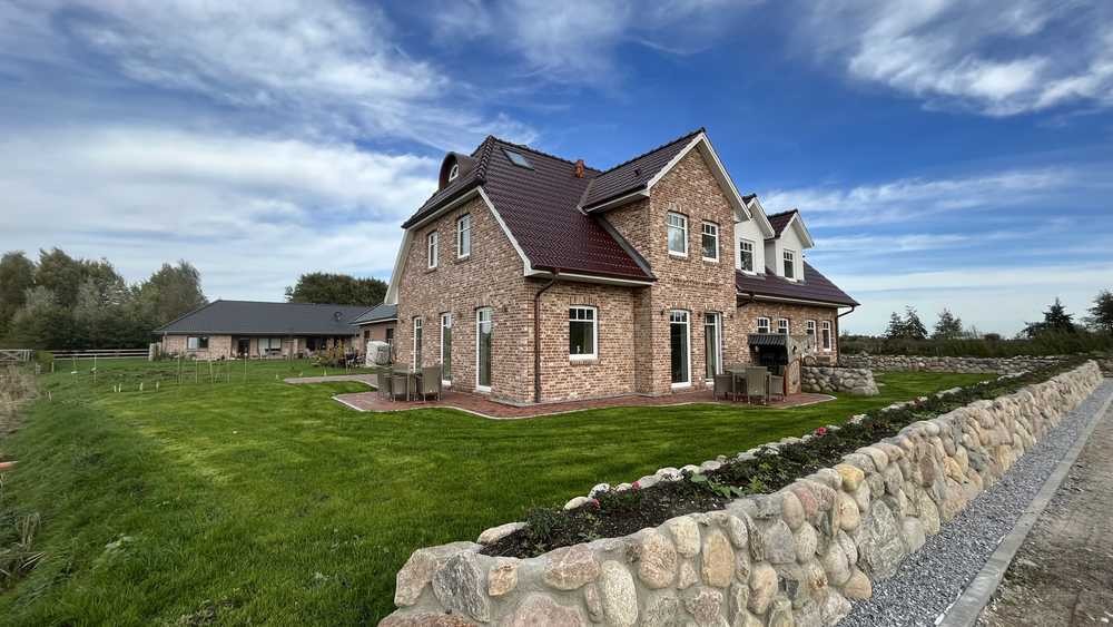 Bei diesem attraktiven Friesenhaus handelt es sich um einen Neubau. Die zweistöckige Doppelhaushälfte zeichnet sich durch eine luxuriöse Innenausstattung aus. Zu dem Objekt zählen neben fünf hübschen Zimmern vier Badezimmer. Des Weiteren überzeugt der gute Schnitt, der auch für WGs geeignet ist. Eine bereits eingebaute Küche, Kaminofen, Whirlpool und eine geschmackvolle Einrichtung mit Boxsprinbetten gehören zum Haus. Das Haus wurde 2022 erbaut und wird per Fußbodenheizung beheizt. Auf den Zeichnungen ist es die Haushäfte "rechts" mit dem größeren Garten und der Süd/ West Ausrichtung