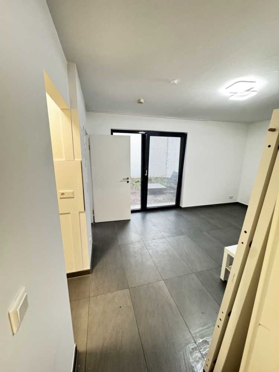 Das Apartment umfasst ein helles Wohn-/Schlafzimmer mit Garten und Terrasse zusammen, sowie mit Einbauküche (inklusive Herd