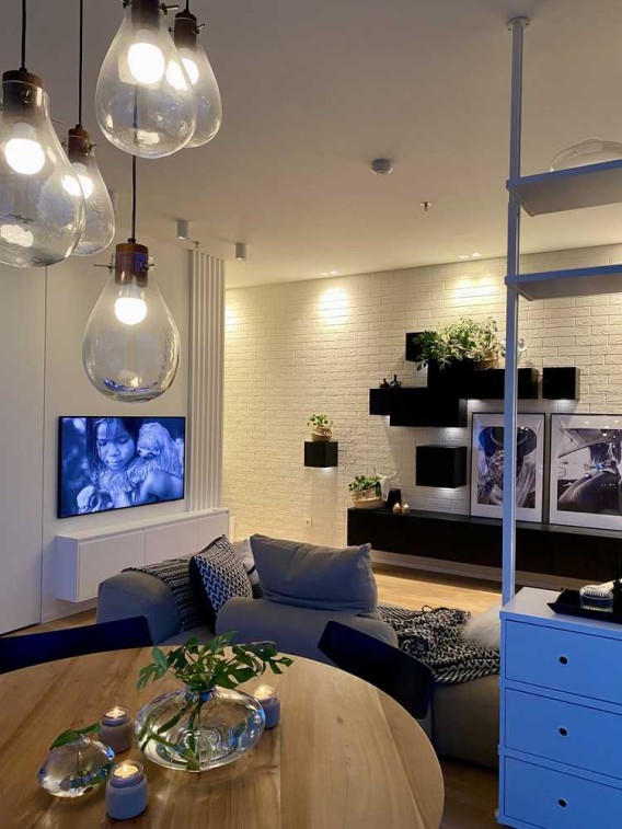 Die großzügig geschnittene Loftwohnung liegt im 9. Stockwerk und bietet dank durchgehender Panoramaverglasung spektakulären Blick auf die Alpen, den königlichen Hirschgarten, den Münchner Norden und Teile der Innenstadt. Die konsequent durchdesignte Wohnung mit Parkettboden in den Wohnräumen, Fußbodenheizung und Einrichtung von u.a. Ligne Roset, Bolia, Saba Italia und Ferm Living bietet
