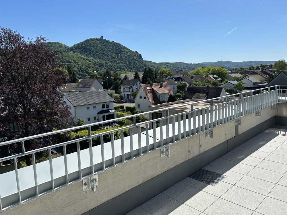 Anspruchsvolle 3-Zimmer-Penthouse-Wohnung über 2 Etagen im Neubau. Barrierefreier Zugang, 3 Zimmer, offene Küche, Ankleideraum oder Arbeitszimmer, Flur, Diele, innenliegende Treppe, Bad mit Dusche, Bad mit Wanne, Abstellräume, große Dachterrasse mit freiem Blick auf das Siebengebirge. Kellerraum, Autostellplatz mit Wallbox, überdachte Fahrradstellplätze, Aufzug, Kellerwaschraum, Gartenmitbenutzung.