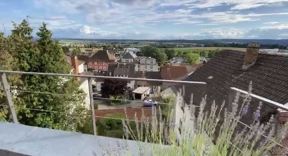 Durch die extra großen Schiebetüren (2,5m Breite) und Glaselemente sehen Sie über die Dächer Gailingens, auf den Garten und den Wald und bis nach Schaffhausen.