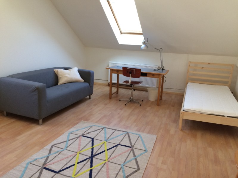 Wir vermieten ein möbliertes, helles Zimmer in der gepflegten Dachgeschosswohnung (3-er WG) unseres Hauses und suchen eine freundliche Mieterin zwischen 20 und 30 Jahren, gern Studentin oder Berufsanfängerin.