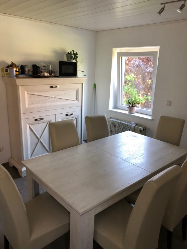 Hallo, ab dem 01.02.2026 ist dieses sonnige Zimmer in der 71m² großen EG-Wohnung eines 2018 kernsanierten Zweifamilienhauses zu vermieten. Im Zimmer wurde heller Laminatfußboden verlegt. Die großflächigen Fenster können alle mit Rollläden verdunkelt werden. Zusätzlich ist ein Kachelofen eingebaut, der vom Flur aus für gemütliche Stunden mit Scheitholz beheizt werden kann. Die Küche ist mit Geschirrspülmaschine, Backofen/Herd sowie Kühlschrank inkl. Gefrierfach und Sitzgruppe ausgestattet. Zudem verfügt die WG neben dem WC im Bad über ein separates WC. Eine Waschmaschine und ein Wäschetrockner können im Keller mitbenutzt werden und es besteht die Möglichkeit, sein Fahrrad einzustellen. Der Garten kann mitbenutzt werden. Das Haus liegt in einer ruhigen Wohngegend.