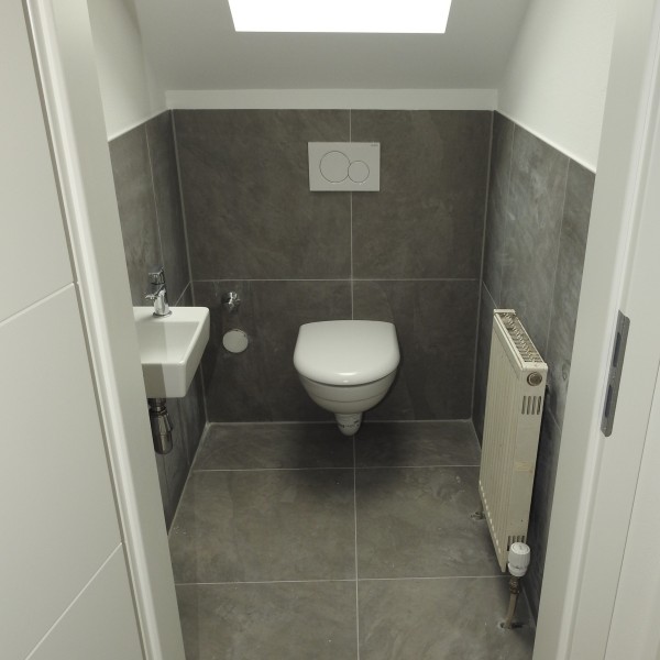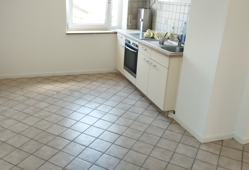 3 ZKB mit separatem Gäste-WC im Dachgeschoß eines Drei-Familien-Hauses. Bad und WC neu. Waschmaschinenanschluß im Bad. Wohnküche mit kleiner Einbauküche. Fliesenboden in Bad, Flur, WC und Küche, sonst Parkett. Fußbodenheizung und Handtuchheizkörper im Bad. Dreifach-Verglasung, Gas-ZH. Alle Decken und Türen neu. Fenster in alle Himmelsrichtungen, Bad mit Fenster, Gäste-WC mit Dachflächenfenster. Ca. Flächen: Wohnen 26 qm, Küche 14 qm, Arbeiten 12 qm, Schlafen 13 qm, Bad 8 qm, WC 1 qm, Flur 6 qm, Diele 5 qm.