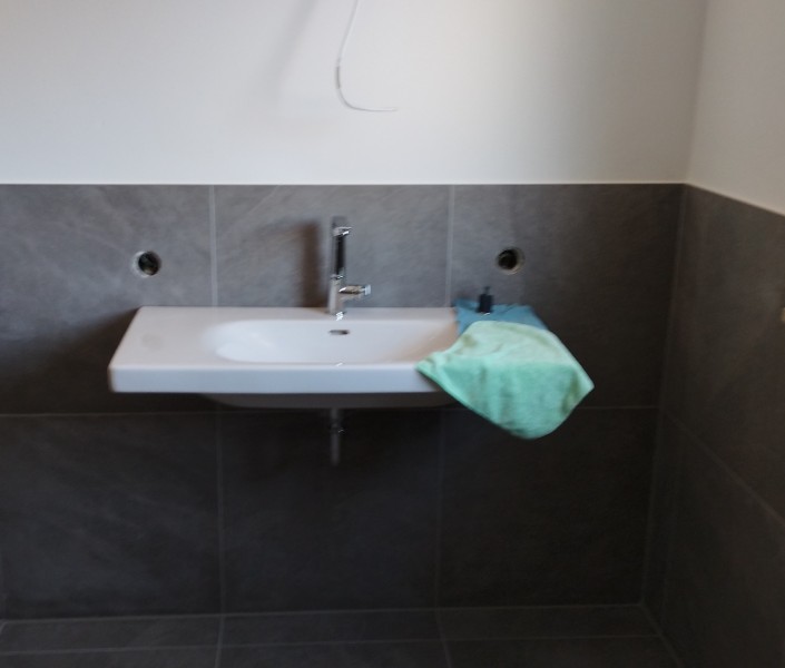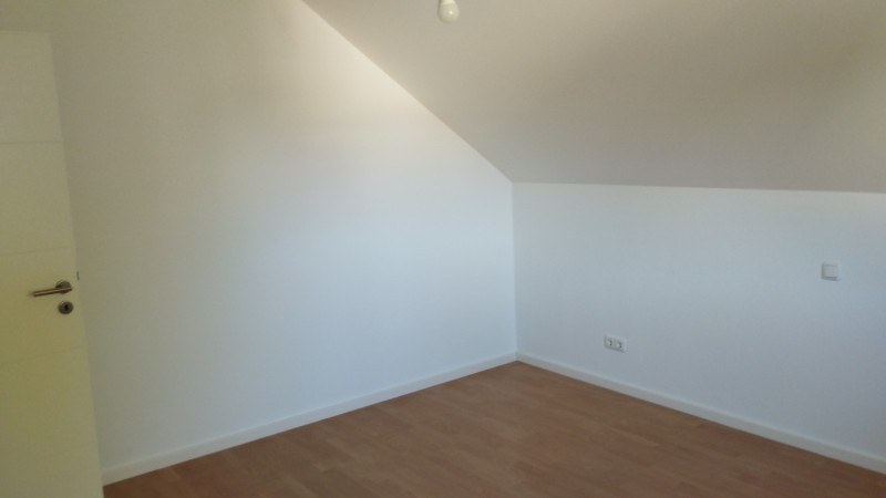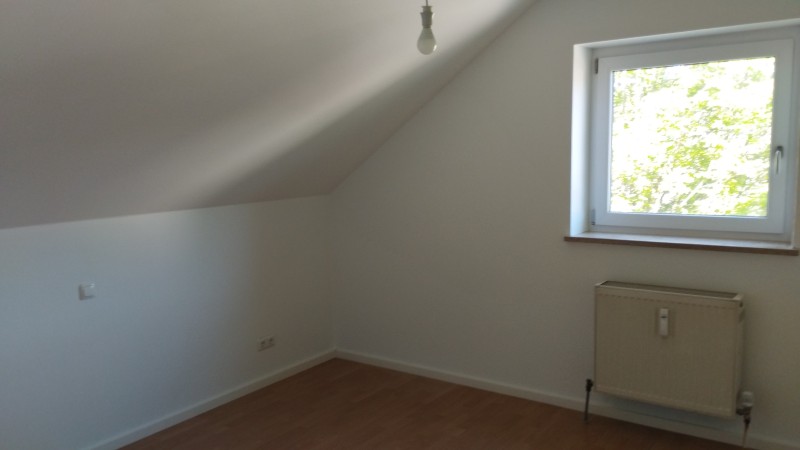 Kein Balkon/Terrasse vorhanden. Kein Keller vorhanden, aber großer Schrank im Flur in der Wohnung. Grundfläche größer als Wohnfläche wegen Dachschrägen, Kniestock 1,2 m.