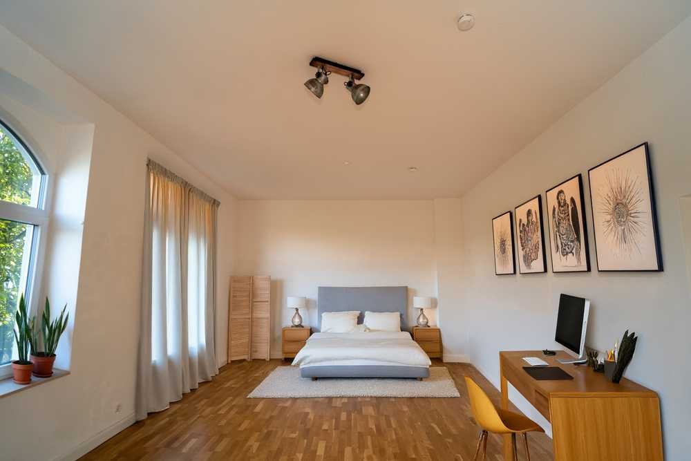 Neben drei weiteren Wohnungen befindet sich in der Hochparterre des Herrenhaus ein Bürobereich. Derzeit besteht hier die Möglichkeit bis zu drei Büros anzumieten.