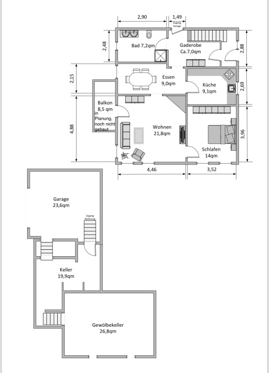 • Nutzfläche: Keller, Gewölbekeller, Garage mit insgesamt 68 qm