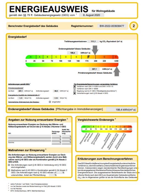 | Endenergiebedarf: | 198,40 kWh/(m²*a) |