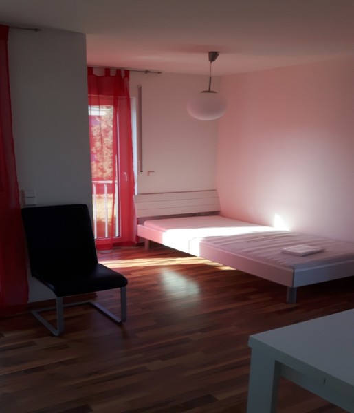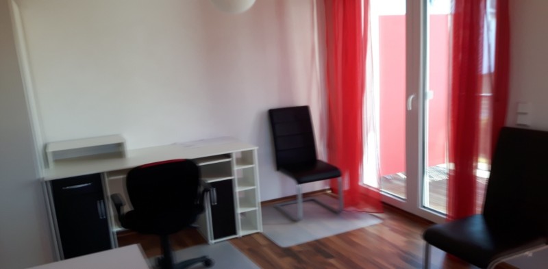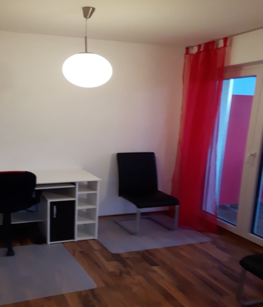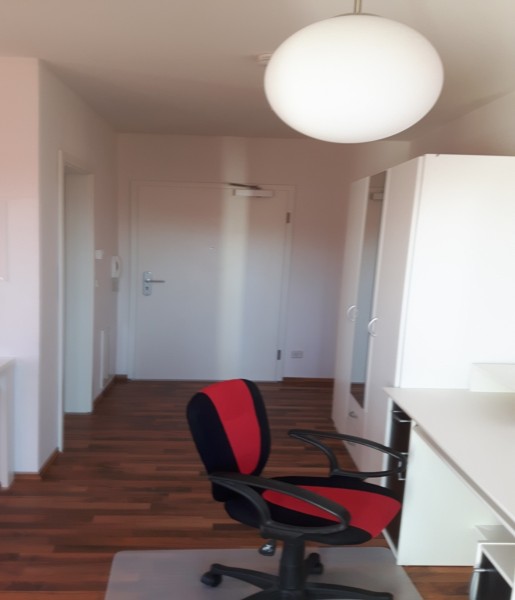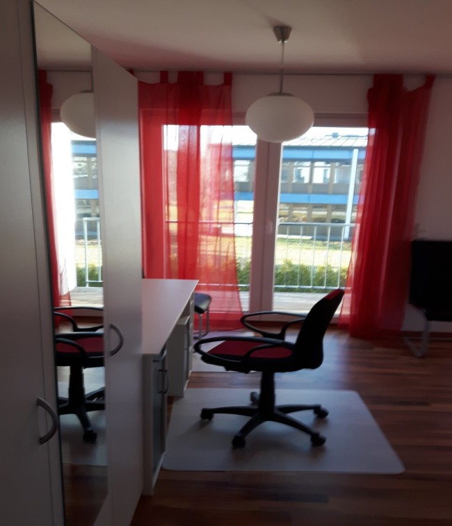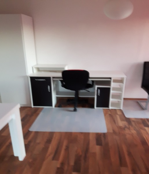 Die Wohnung ist möbliert mit: Bett, Schreibtisch, Bürodrehstuhl,Esstisch, 2 Stühlen, Kleiderschrank