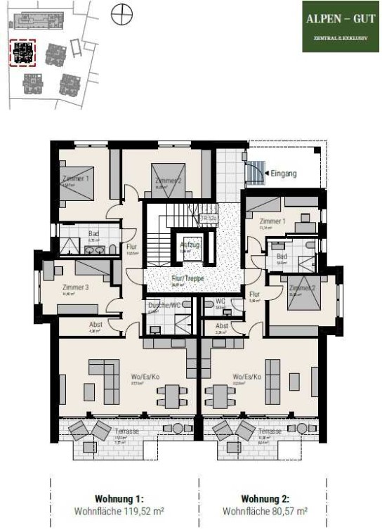 ehemaligen Postareal entsteht ein Wohnquartier, dass die Vision einer nachhaltigen und komfortablen Lebensweise im Herzen Sonthofens verkörpert.