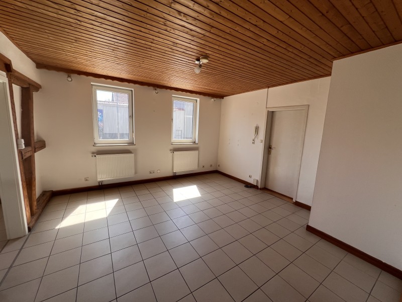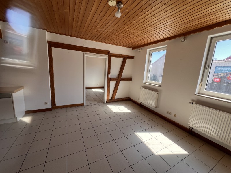 Diese helle und freundliche Wohnung wurde saniert. Sie besticht durch die offene, großzügige Bauweise. Besonderen Charme und Loft-Charakter erlangt sie durch freigelegte Fachwerkbalken. Der Steingutboden in Küche, Wohn- und Schlafzimmer ist besonders pflegeleicht und auch für Allergiker geeignet. Die Wohnküche bietet Platz für einen seperaten Esstisch. Das moderne Tageslichtbad mit Fenster verfügt über eine bodengleiche Dusche mit Glasabtrennung.