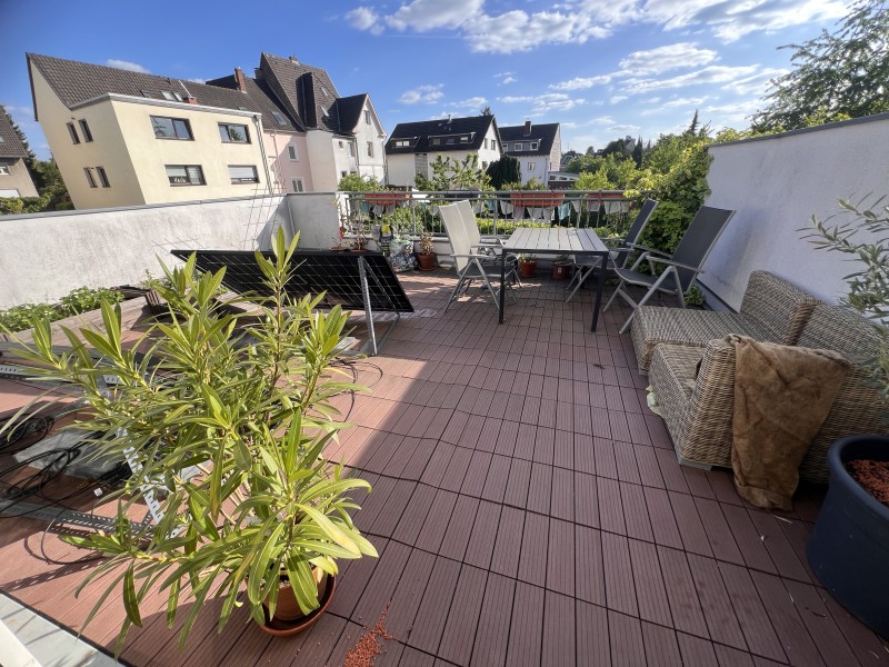 2 Autostellplätzen in der eigenen Einfahrt, einem 45 m^2 Balkon und einer stadtnahen Lage. Die Bahn ist in 2 min zu Fuß zu erreichen. Die Stadt Bonn per Bahn in 10 min erreichbar. Bäcker und Rewe sind in 1-2 min mit dem Rad erreichbar.