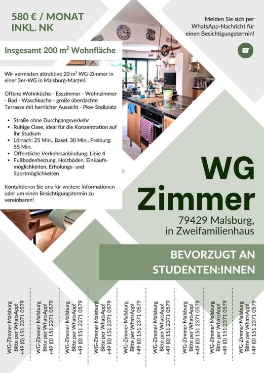 Wir vermieten attraktive 20 m² WG-Zimmer in einer 3er-WG in Malsburg-Marzell (bevorzugt an Studenten:innen).