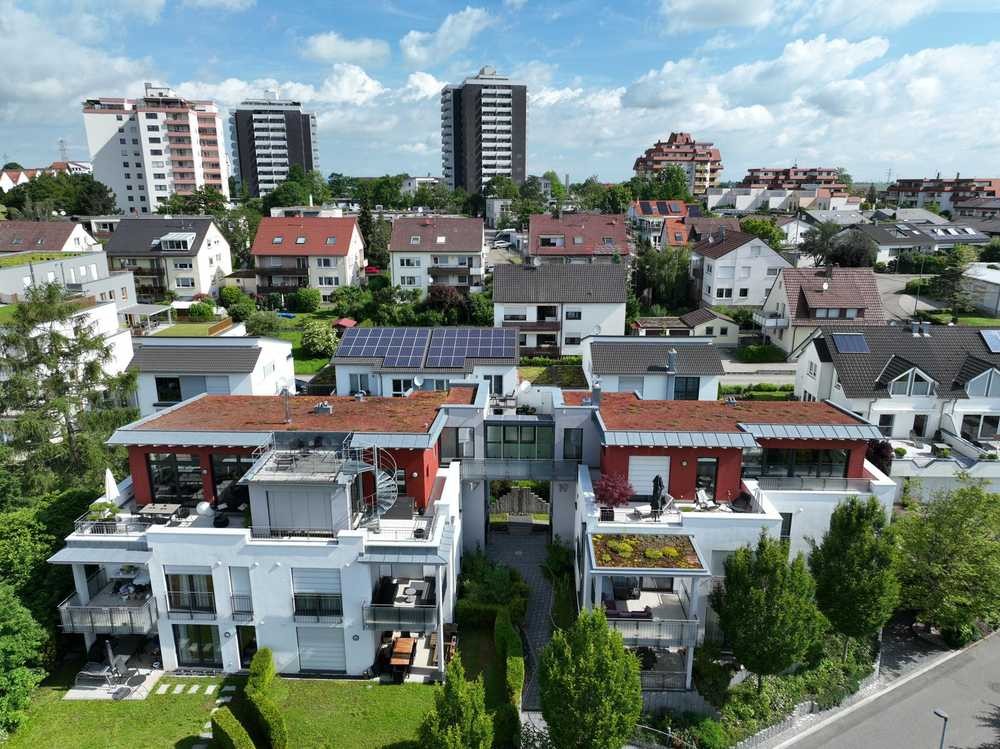 Dieses moderne und neuwertige Penthouse im 3.Obergeschoss aus dem Jahr 2015 überzeugt mit durchdachtem Design, Räume mit sehr großzügigen deckenhöhen, rundum Bodentiefe Fenster und weitläufige Balkone/Terrassen sorgen für einen gehobenen Wohnkomfort. Die geräumige Wohnfläche ist aufgeteilt in zwei Bereichen die mit einer In Door/Out Door Brücke verbunden sind. Im Linken Hausteil erwartet Sie ein offener Wohn und Essbereich, nicht nur mit einer stilvollen Einbauküche die optimal in dem Lichtdurchflutetem Raum integriert ist sondern zusätzlich sorgt der freistehende Kamin für behagliche Abende. In diesem Bereich befinden sich auf der Rückseite zwei Schlafzimmer mit separatem Gäste Bad. Über die Brücke erreichen Sie den Rechten Teil des Hauses in der sich die Master Suite befindet. Dort erwartet Sie das Private Schlafzimmer von dem aus Sie den direkten Zugang über das Ankleidezimmer mit Deckenhohen Einbauschränken in das großzügige Badezimmer mit integrierten, hochwertigen Einbaumöbel, freistehender Badewanne, Sauna, riesige Walk-In Dusche. Über den Aufzug erreichen Sie direkt die Tiefgarage wo sich Ihre separaten abschließbaren Garagen befinden. Auf der gleichen Ebene befinden sich Ihr persönlicher Kellerraum sowie der gemeinsame Waschraum, Fahrradraum sowie der Müllraum.