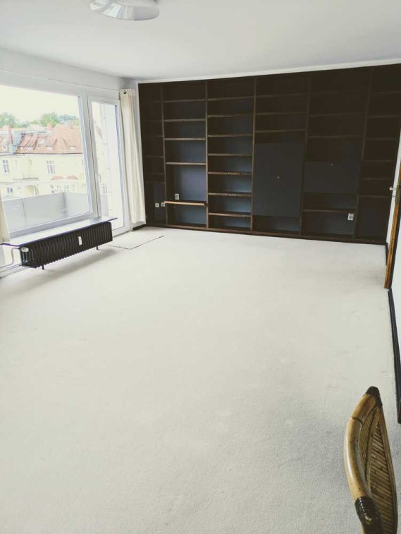 Zu der Wohnung zählen vier große Zimmer, ein Bad, ein Gäste WC, eine offene Einbauküche, 3 Balkone, ein großer Flur.