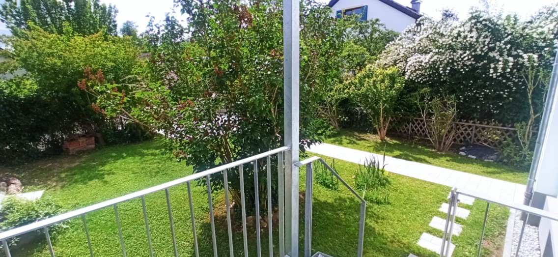 Der geräumige Balkon führt über eine Treppe direkt in den Ga