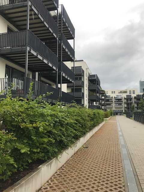 Die Wohnung befindet sich in einem Neubau-Wohnkomplex mit KfW-55-Standard. Die ansprechend gestalteten Mehrfamilienhäuser des Quartiers bilden einen exklusiven, ruhigen, grünen Innenhofbereich, zu dem ausschließlich die Bewohner Zutritt haben. Die Wohnung blickt in die Gärten des Innenhofs.