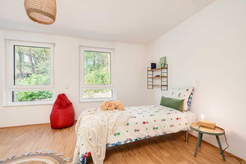 Die exklusiven Immobilien „Am Mühlbach“ bieten Ihnen ein modernes Wohnerlebnis auf höchstem Niveau. Hochwertiger Eichenparkettboden und eine angenehme Fußbodenheizung sorgen für ein behagliches Wohnklima. Die teils vorhandenen Einbauküchen fügen sich harmonisch in das moderne Raumkonzept mit flexiblen Gestaltungsmöglichkeiten ein. Große Fenster mit elektrischen Rollläden durchfluten die Räume mit Licht und bieten gleichzeitig Sicherheit sowie Komfort. Vor der Haustür wartet Ihr persönlicher Parkplatz und die Sichtschutzwände bewahren auf den großzügigen Terrassen und Gärten Ihre Privatsphäre – perfekt für Kinder und eine entspannte Familienzeit. Zusätzlich profitieren Sie von der quartierseigenen Heizungsanlage und den Photovoltaikanlagen, die Ihnen eine nachhaltige und kosteneffiziente Energieversorgung sichern.