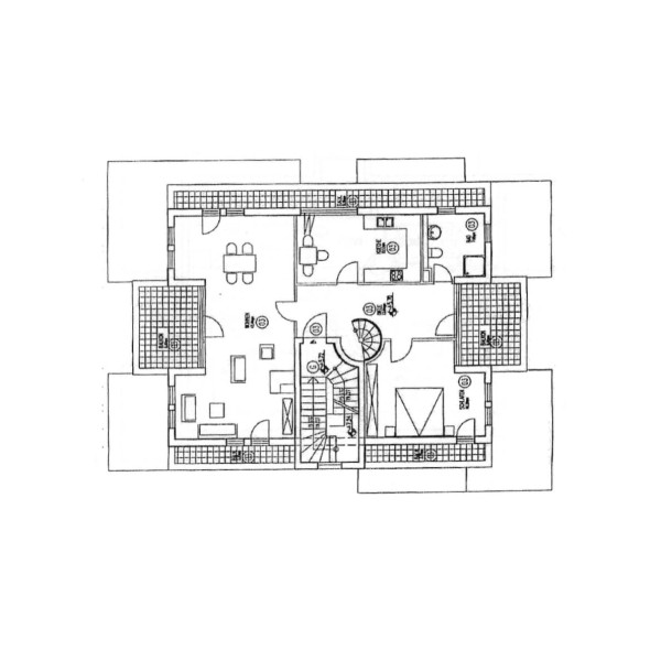 Das obere Geschoss ist über eine innenliegende Wendeltreppe erreichbar. Im Obergeschoss befinden sich 3 Schlafzimmer sowie 2 Bäder, wobei 1 Bad über das Studiozimmer erreichbar ist. Alle Badezimmer erhalten Tageslicht und sind komplett gefliest.