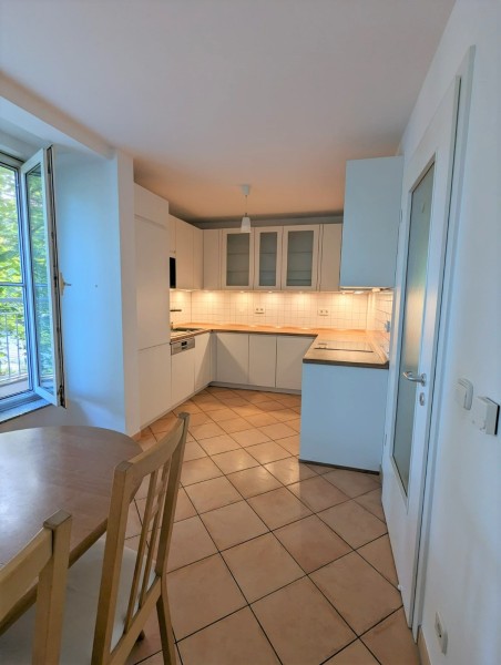 Die neuwertige Einbauküche, die vor ca. 4 Jahren gekauft wurde, bietet viel Stauraum und ist mit seinen hochwertigen Geräten von Bosch und Siemens direkt einsatzbereit. Induktionsherd, Backofen, Einbau-Mikrowelle und die eingebaute Kühl-Gefrierkombination machen die Küche komplett.