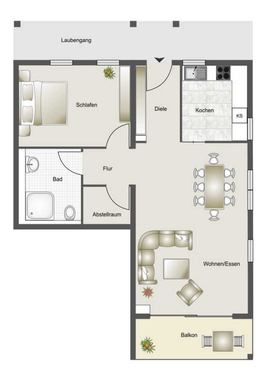 Auf dem am Wohnbereich angrenzenden Balkon können Sie jederzeit die frische Luft und die Sonne genießen.