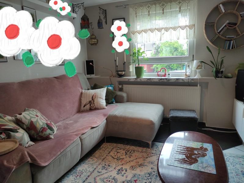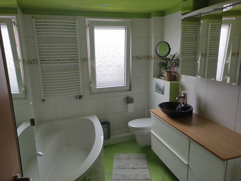 Das Haus ist teilmöbliert (z.B. Sitzgelegenheit in der Essküche und Wohnzimmer, ausgestattete Küche, Waschmaschine und Spülmaschine) und Weiteres. Das zu vermietende Zimmer ist 23 m2 groß, ist südlich ausgerichtet und teilmöbliert mit einem großen begehbaren Kleiderschrank, einem separaten Büro und einer eigenen Toilette. Bei Bedarf kann über weitere Möbelstücke in Absprache und je nach Verfügbarkeit gesprochen werden. Es liegt im 2. OG des RMH. Außerdem werden gemeinschaftlich genutzt: Die Essküche, das Wohnzimmer (beides im EG) und das Bad mit Dusche und Wanne (1. OG). Unmittelbar an der Hauptstraße ist eine Bushaltestelle.