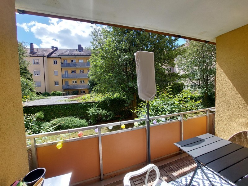 Die Genossenschaftswohnung liegt mitten in Sebald, in einem sehr ruhigen Viertel ohne viel Durchgangsverkehr. Sie ist im Sommer durchs Hochparterre sehr angenehm kühl, wozu auch der ruhige, grüne Innenhof beiträgt.