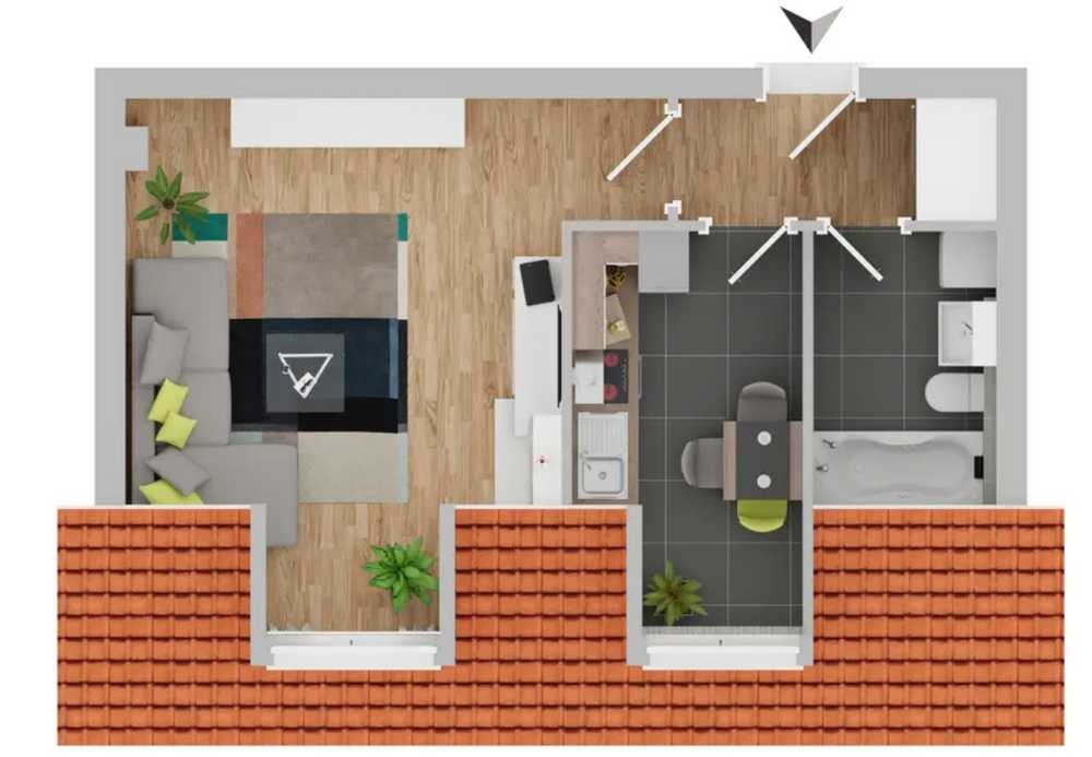 neu renovierte 1-Zimmer-Wohnung mit Blick ins Grüne im Dachgeschoss
