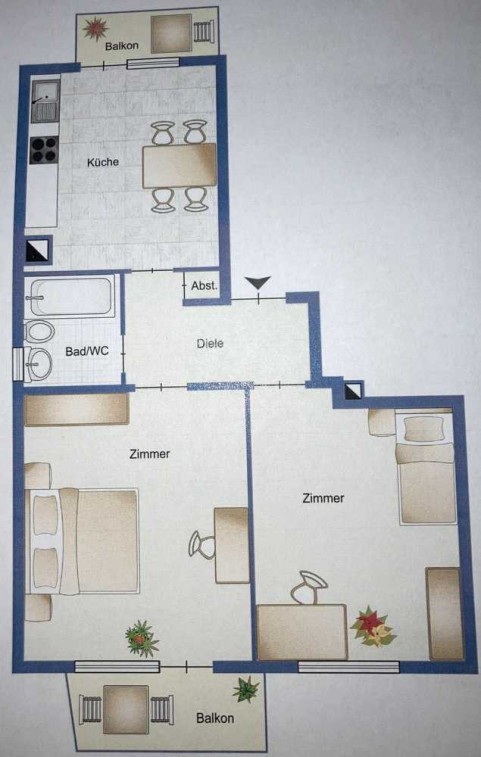 Zum 01.08.25 oder 01.09.2025 kann in die attraktive und vollständig renovierte Wohnung, die in der zweiten Etage liegt, eingezogen werden. Zu der Wohnung zählen zwei schöne Zimmer und zwei sonnige Balkone. Ohne Einbauküche.