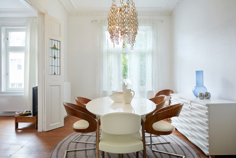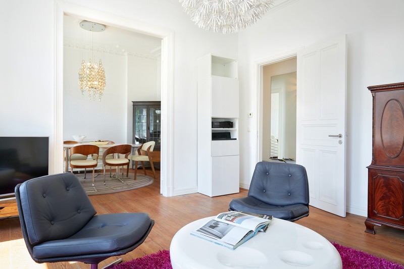 Das Haus wurde in den letzten Jahren aufwendig instand gehalten und ist in einem technisch modernen Zustand. Drei Zimmer sind nach Süden ausgerichtet, zwei davon sind durch eine Flügeltür mit Jugendstilfenstern miteinander verbunden. Kassetierte Türen, guterhaltener Stuck und der alte Dielenfußboden verleihen dieser Wohnung ihren Altbaucharme.