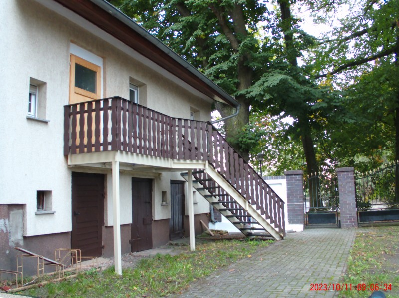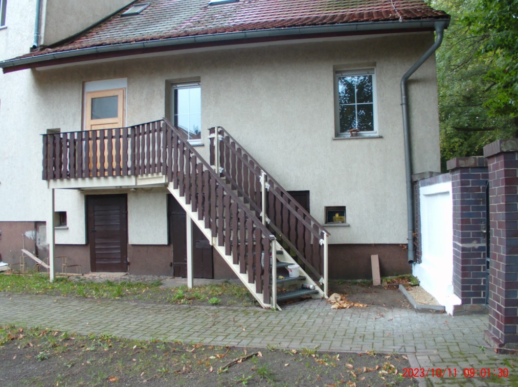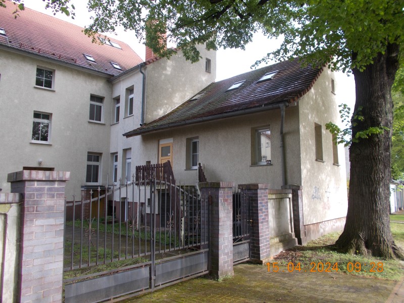 Wir vermieten das Seitengebäude an unserem Haupthaus an solvente Interessenten ohne Haustiere. Es ist für Gehbehinderte nicht geeignet, denn es ist direkt über eine Außentreppe vom Hof aus erreichbar. Innen gibt es noch einmal eine steile Treppe, die Unter- und Obergeschoss miteinander verbindet. Die sehr kleine Einbauküche hat kein Fenster. Im Gebäude befindet sich nur eine neue Duschkabine, aber keine Badewanne. Das Seitengebäude liegt direkt an der schönen Teichpromenade, wo Sitzbänke zum Verweilen einladen. Vom Wohnzimmer haben Sie einen Blick auf den Teich.