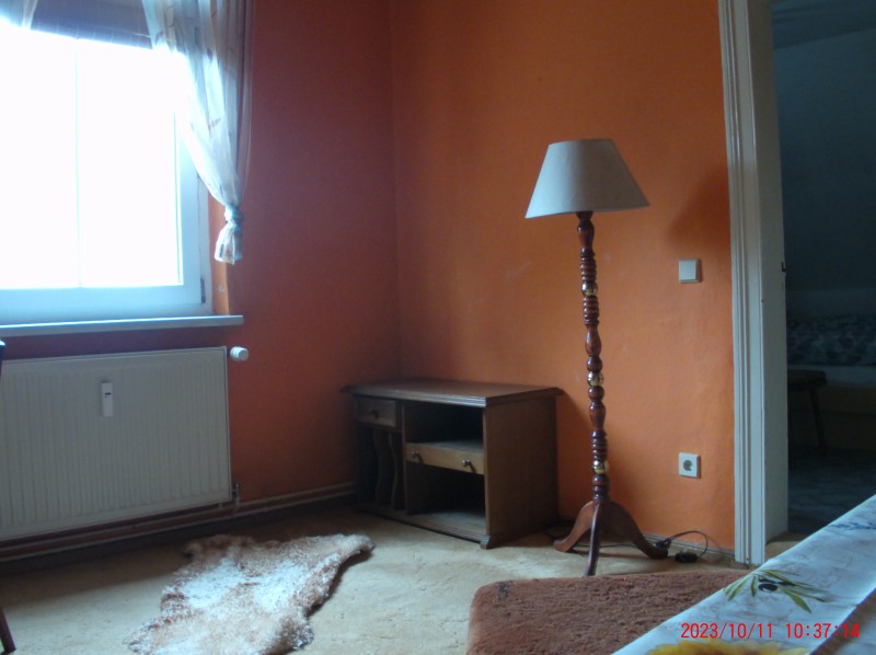 Wir vermieten im Dachgeschoss unseres MFH diese in sich abgeschlossene Wohnung mit schrägen Wänden an Nichtraucher ohne Haustiere für kürzere oder längere Zeit. Dabei streben wir eine Mindestmietzeit von 1 Monat an, was nicht Bedingung ist, denn die Mietdauer kann flexibel vereinbart werden. Die Wohnung besteht aus 1 Schlafzimmer mit 2 getrennt stehenden Betten, 1 Wohnzimmer mit 2 Tischen, Sitzmöbeln, Coach, Schrankwand, 1 komplett eingerichteten Küche, 1 Bad mit Badewanne, 1 Korridor.