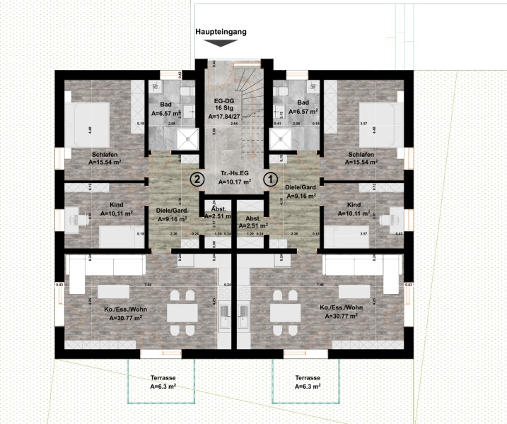 Zwei autarke Erdgeschosswohnungen mit durchdachtem Grundriss