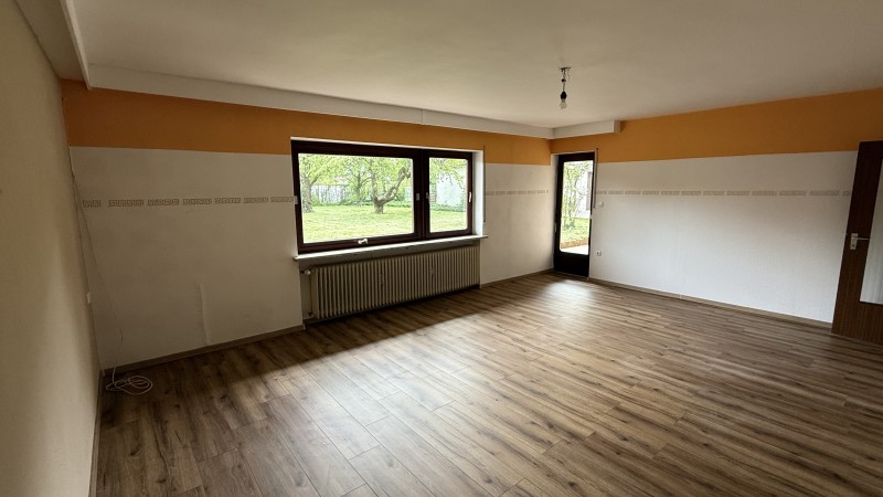 Bei dieser ansprechenden Immobilie handelt es sich um eine Wohnung die ab dem 1.8.2025 bezogen werden kann und dieses Jahr renoviert bzw. modernisiert wurde. Neben drei schönen großen Zimmern (Wohnzimmer ca. 29 qm, Schlafzimmer mit ca. 23 qm und Kinderzimmer mit ca. 16 qm) gibt es in der Wohnung auch eine geräumige Wohnküche mit ca. 18 qm. Besonders hervorzuheben ist die Terrasse mit Blick ins Grüne, auf der es sich wunderbar vom Alltag erholen lässt. Zur Wohnung gehört ein kleiner Kellerraum.