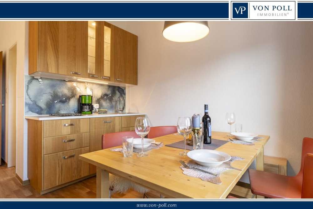 Die Wohnung verfügt über hohe Decken und einen hellen freundlich gestalteten Wohnbereich mit einer modernen Einbauküche - diese bietet alle notwendigen Elektrogeräte und lädt zum Kochen ein.