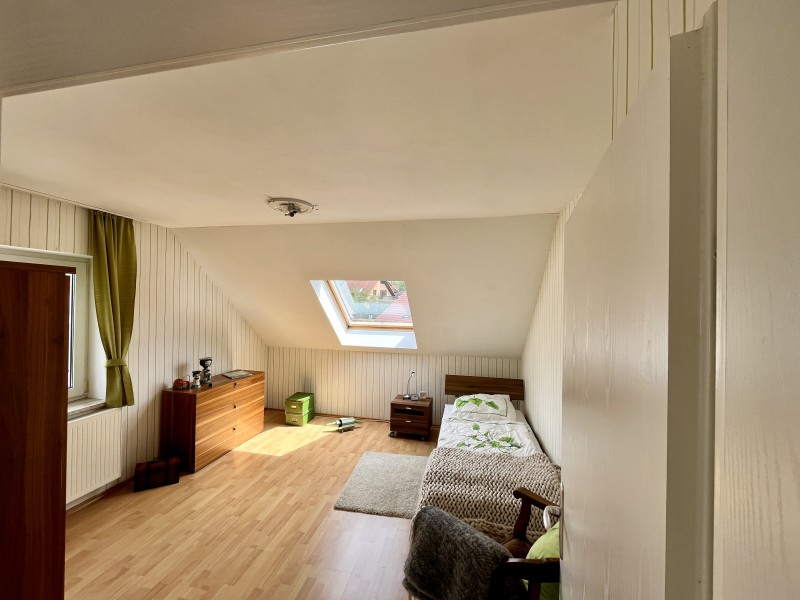Im Inneren erwarten Sie fünf helle Zimmer, eine große Wohnküche, zwei Tageslichtbäder mit Dusche und Badewanne sowie viel Platz auf zwei Etagen. Das Haus ist voll unterkellert – mit Tageslichtfenstern und Garage. Der Keller eignet sich beispielsweise auch als Werkstatt, Lager oder Hobbybereich.