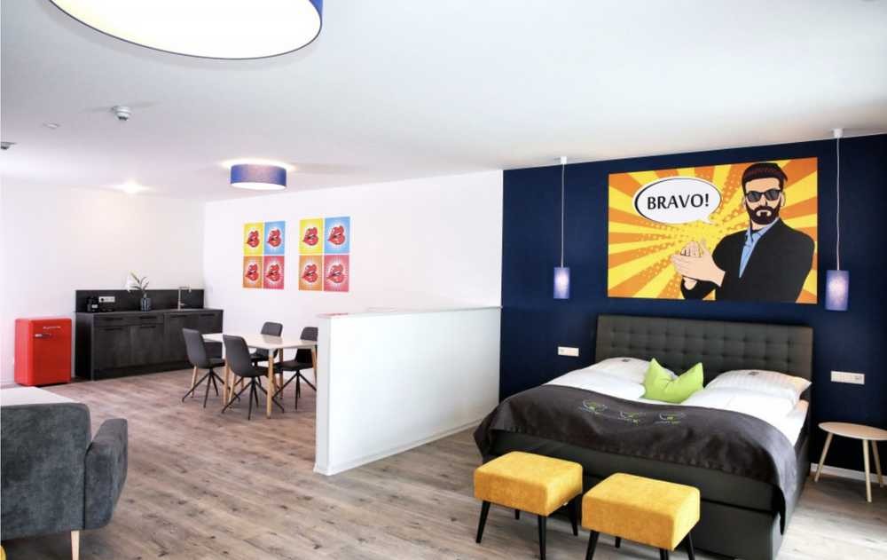 � Wohnen wo andere Urlaub machen. Dieses stilvoll eingerichtete Studio-Apartment im modernen Pop-Art-Stil ist Teil eines exklusiven Serviced-Hotelkonzepts mitten im Herzen von Herford. Hier verbinden sich Design, Komfort und Flexibilität zu einem Wohngefühl, das Maßstäbe setzt – perfekt für alle, die auf Zeit beruflich in der Stadt sind und auf nichts verzichten möchten.