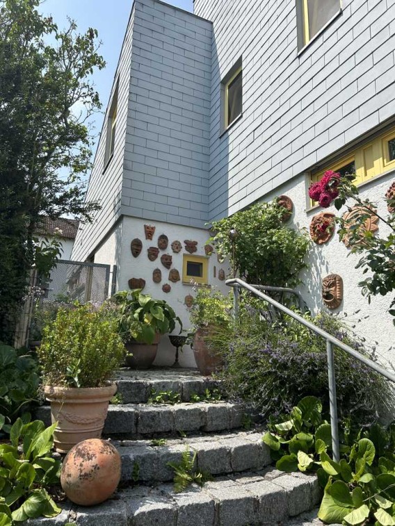 This three-story architect-designed house is an attractive property featuring high-quality interior fittings. As is typical for modern homes, the five inviting rooms include two bathrooms and a separate guest WC. A built-in kitchen with a pantry saves you time and effort when moving in, so you can essentially start cooking right away. Built-in wardrobes throughout the house provide ample storage space.
