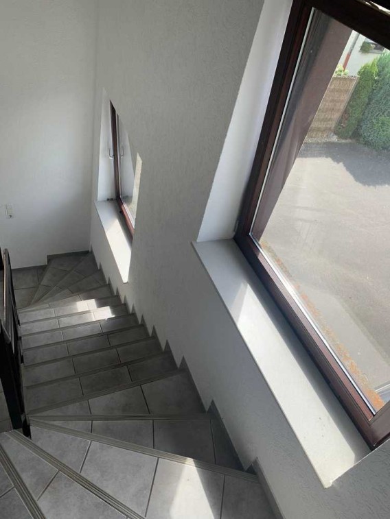 • Eigenes Treppenhaus und Hauseingangstür mit Abstellfläche
