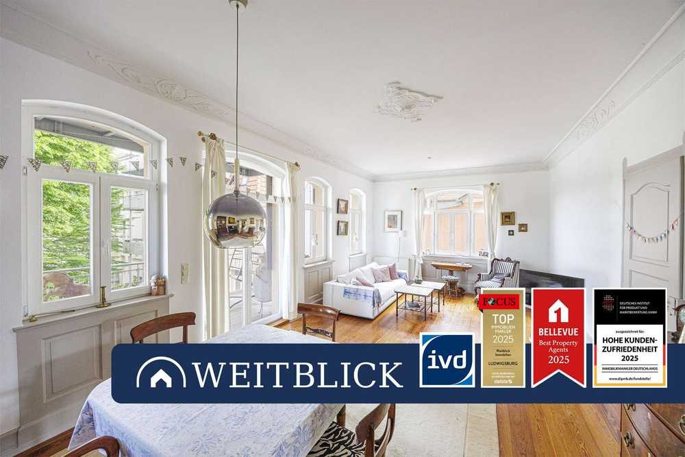 Diese außergewöhnliche 4-Zimmer-Etagenwohnung in zentraler Lage von Ludwigsburg bietet auf einer Ebene großzügige ca. 161 m² Wohnfläche – inklusive eines Balkons, dessen Fläche zur Hälfte angerechnet wurde.