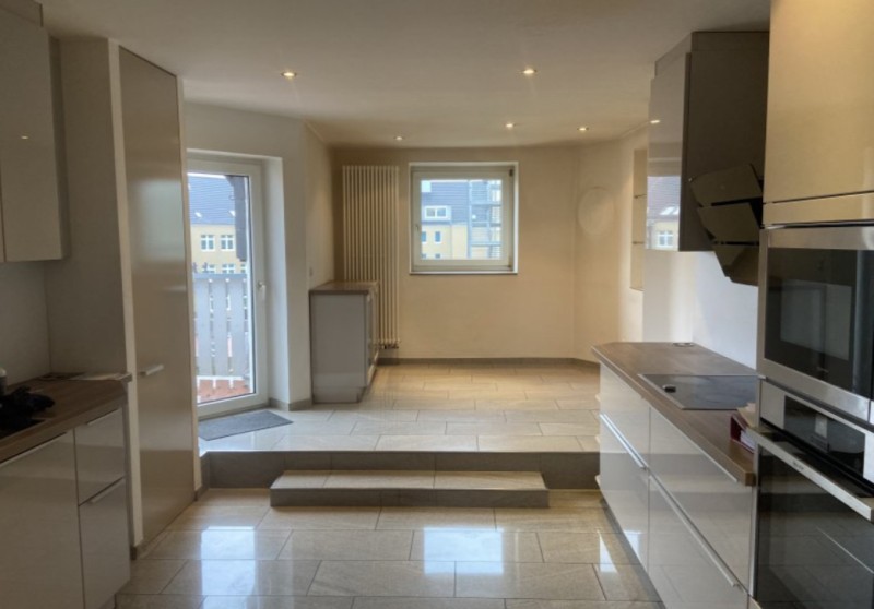 Die vollständig ausgestattete Einbauküche von NEFF (inklusive Herd, Backofen, Kühl-/Gefrierschrank und Spülmaschine) wird mitvermietet.