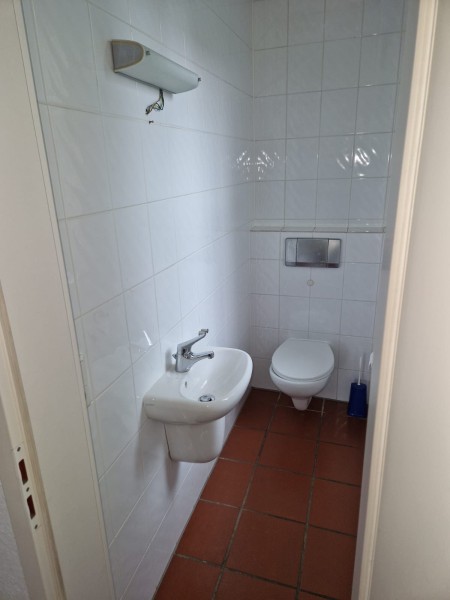 Diese helle Wohnung hat im Erdgeschoss ein großes Wohnzimmer, welches man direkt am Eingang betritt sowie eine Küche und ein Gästebad und im Halb Souterrain ein großes Bad mit Eckbadewanne und zwei Zimmer. Ausgestattet ist sie mit Parkettboden, Terrakotta-Fliesen und Fußbodenheizung. Man gelangt in die Wohnung über einen eigenen Eingang und einen kleinen Garten Und Terrasse. Neben dem Carport befindet sich ein Stellplatz für diese Wohnung.