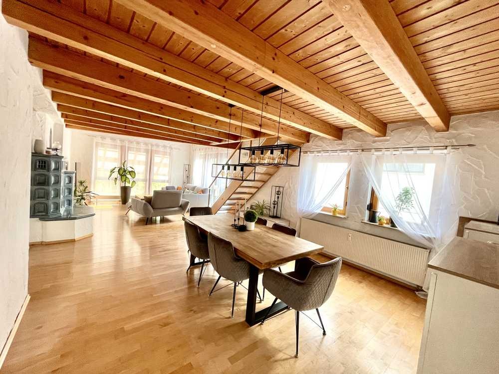 Diese großzügige 4 ½ Zimmer-Galeriewohnung befindet sich im 1. Obergeschoss eines sehr gepflegten Mehrfamilienhauses mit drei Parteien direkt im idyllischen Backnang-Maubach. Die attraktive und sehr hochwertig ausgestattete Wohnung mit ihrer beeindruckenden Wohnfläche von ca. 167 m² ist durch ihre hellen, lichtdurchfluteten Räume eine absolute Rarität auf dem Mietmarkt. Zu den Highlights der Immobilie gehören neben dem Kachelofen im Wohnbereich, welcher bei Bedarf neben der Zentralheizung für eine behagliche Wärme im Winter sorgt, die wunderschöne Galerie, welche perfekt als stilvolles Arbeitszimmer genutzt werden könnte. Der riesige überdachte Balkon sowie die zusätzliche Terrasse, welche zu gemütlichen Abenden einladen, runden das Angebot ab. Weiterhin kann eine geräumige Garage mit Zugang vom Gebäude aus dazu gemietet werden.