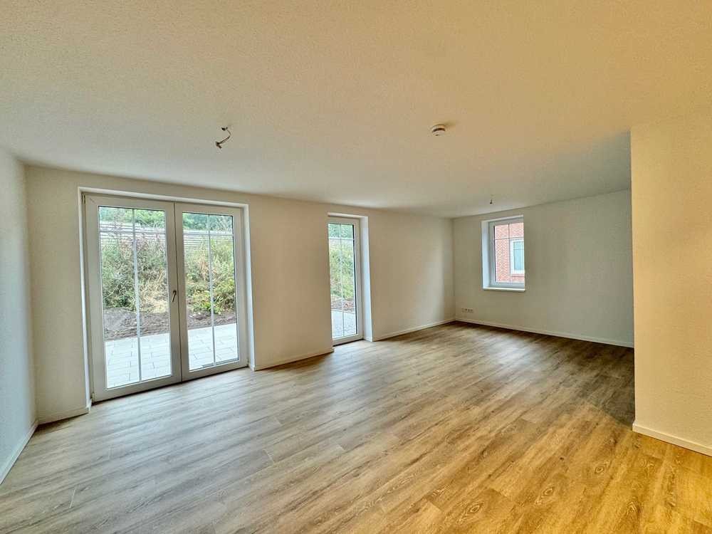 Im Erdgeschoss betreten Sie die Wohnung über einen einladenden, großzügigen Eingangsbereich mit Flur. Von hier aus gelangen Sie in das helle, weitläufige Wohnzimmer mit offener Küche.