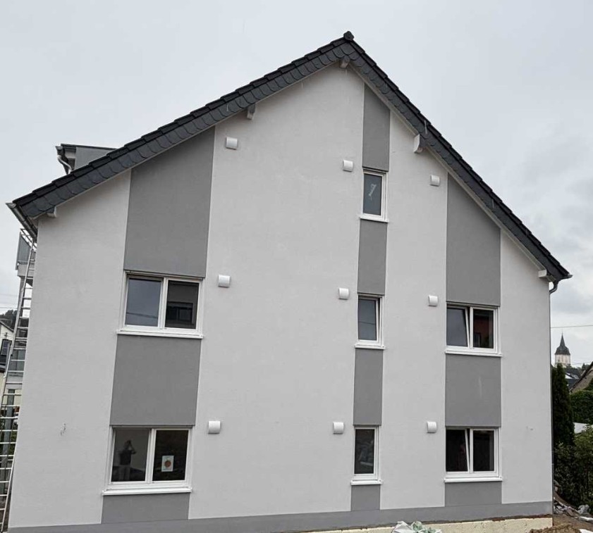 Tolle 3-Zimmer Wohnungen in energieeffizientem KFW55 Haus, Fußbodenheizung, zentrale Luft-Wärmepumpe, kontrollierte Wohnraumlüftung durch dezentrale in den Wohnungen installierte, moderne Einbauküchen in Hochglanz weiß, ebenerdige Duschen, moderne Betonfliesenoptik in Format 30x60cm in Bädern, 3-fach Fensterverglasung der Firma WERU (innen und außen weiß), elektrische Rolladensysteme, elektrische Bad-/Handtuchheizkörper in allen Bädern, WCs mit Softclose System, Waschmaschinen- und Trockneranschlüsse in Masterbad, Fliesenspiegel in Bädern 1,20m hoch außer Dusche (2m) mit modernen weiß-matten Fliesen (30x60) ausgestattet, alle Innentüren in Röhrenspankerntüren in CPL Ausführung weiß, Ganzglasduschabtrennungen, alle Wohnungen mit Malervlies und in weiß 2x gestrichen. Alle Räume sowie Balkon sind mit modernen LED Leuchten ausgestattet. Alle Bäder erhalten 70cm breiten Spiegel mit integriertem dimmbarem Licht (kalt/weiss). Moderne Einbauküchen in Lacklaminat weiss hochglanz, Griffe Edelstahloptik metall, Vollauszüge mit Dämpfung, Arbeitsplatte und Spritzschutz in stylischer Betonoptik, Unterschränke mit Auszügen, Besteckeinsatz, Abfallsammler, Einbauspüle inkl. Armatur, Geschirrspüler, frei stehender großer Kühl-Gefrierkombination in Edelstahloptik, moderne schwarze Wand Abzugshaube, Giro Unterbau- Nischenleuchten, Glaskeramik Kochfeld, Einbau-Backofen (Küche als Leihküche kostenneutral)