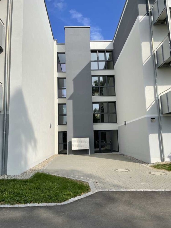 Alle Wohnungen sind über Laubengänge, dem Treppenhaus oder Aufzug erreichbar. Zu den 4-Zi-Wohnungen gehören 2 Außenstellplätze, zu allen anderen Wohnungen gehört ein Außenstellplatz, diese müssen separat angemietet werden.