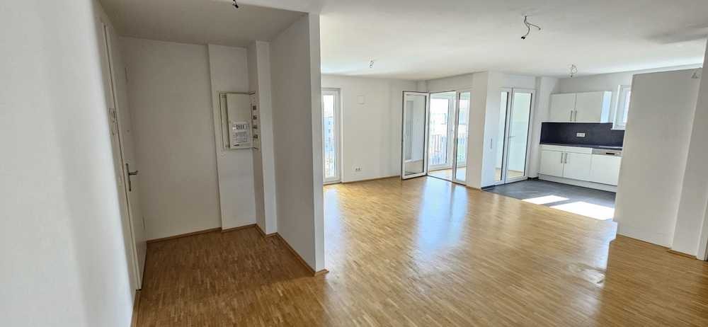 Zentraler Punkt der Wohnung ist der große Wohn- und Essbereich mit offener Küche.
