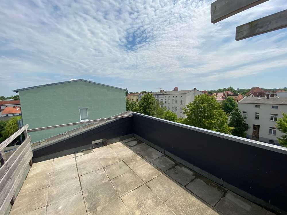 Dachterrasse mit 3 m x 4,20 m. Zugang über Treppe vom Wohnzimmer.
